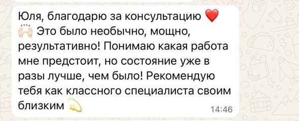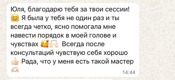 Вы пишете мне, и мы коротко обсуждаем, с чем именно вы хотите поработать, что беспокоит или где чувствуете застревание.